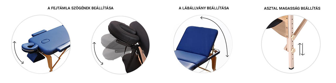 Ezenkívül az asztal harmadik részében módosíthatja a masszázsasztal dőlésszögét. Ez a funkció is az Ön kényelmét szolgálja.