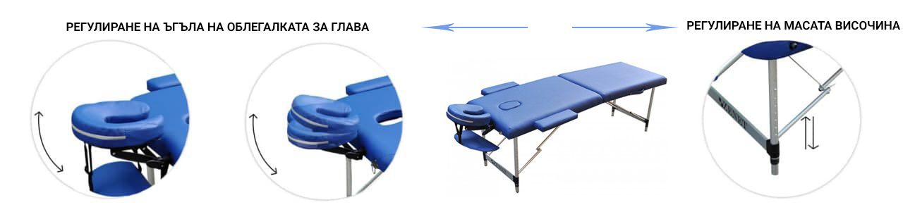 Масажна кушетка Zenet 1049 размер М трисекторна, алуминиева, преносима с чанта