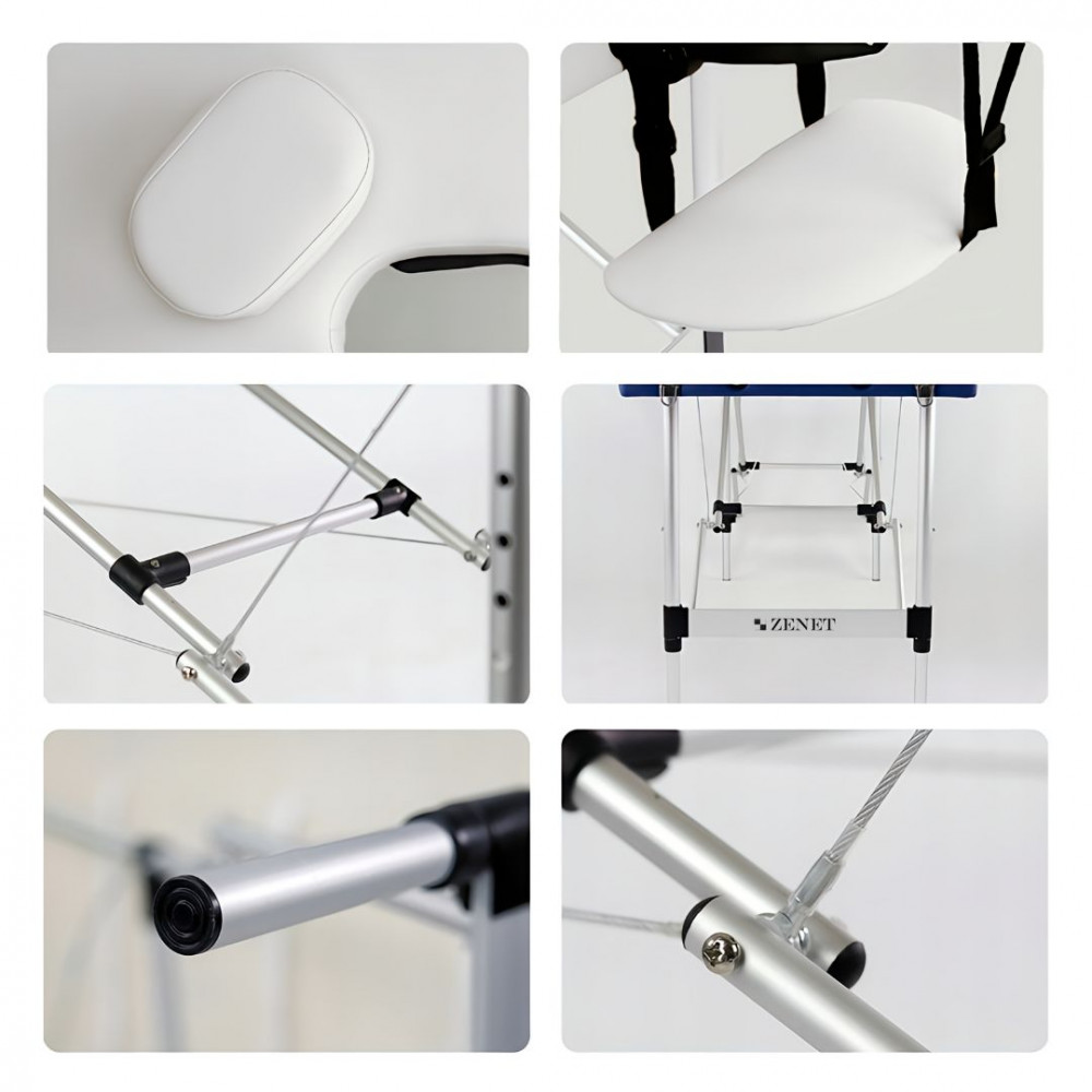 Masa de masaj Zenet ZET-1049 mărimea M alb cu un design perfect gândit, creează un confort maxim pentru utilizator. Pentru o transportare ușoară în cazul unei vizite private, aceasta se asamblează într-o valiză compactă acoperită cu husă de protecție.