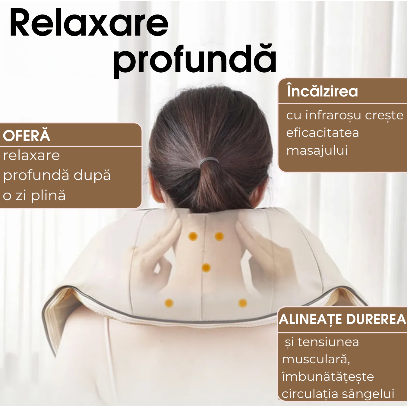 - Capete de Masaj: 8 capete de masaj shiatsu adânc