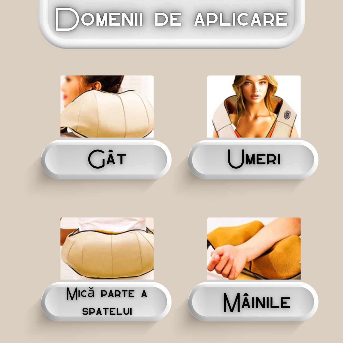 Aparat de masaj cervical, gât și spate ZENET-757 cu funcție de încălzire - Bej