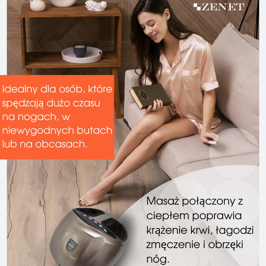 - 1 masażer do stóp z funkcją podgrzewania i masażem limfatycznym