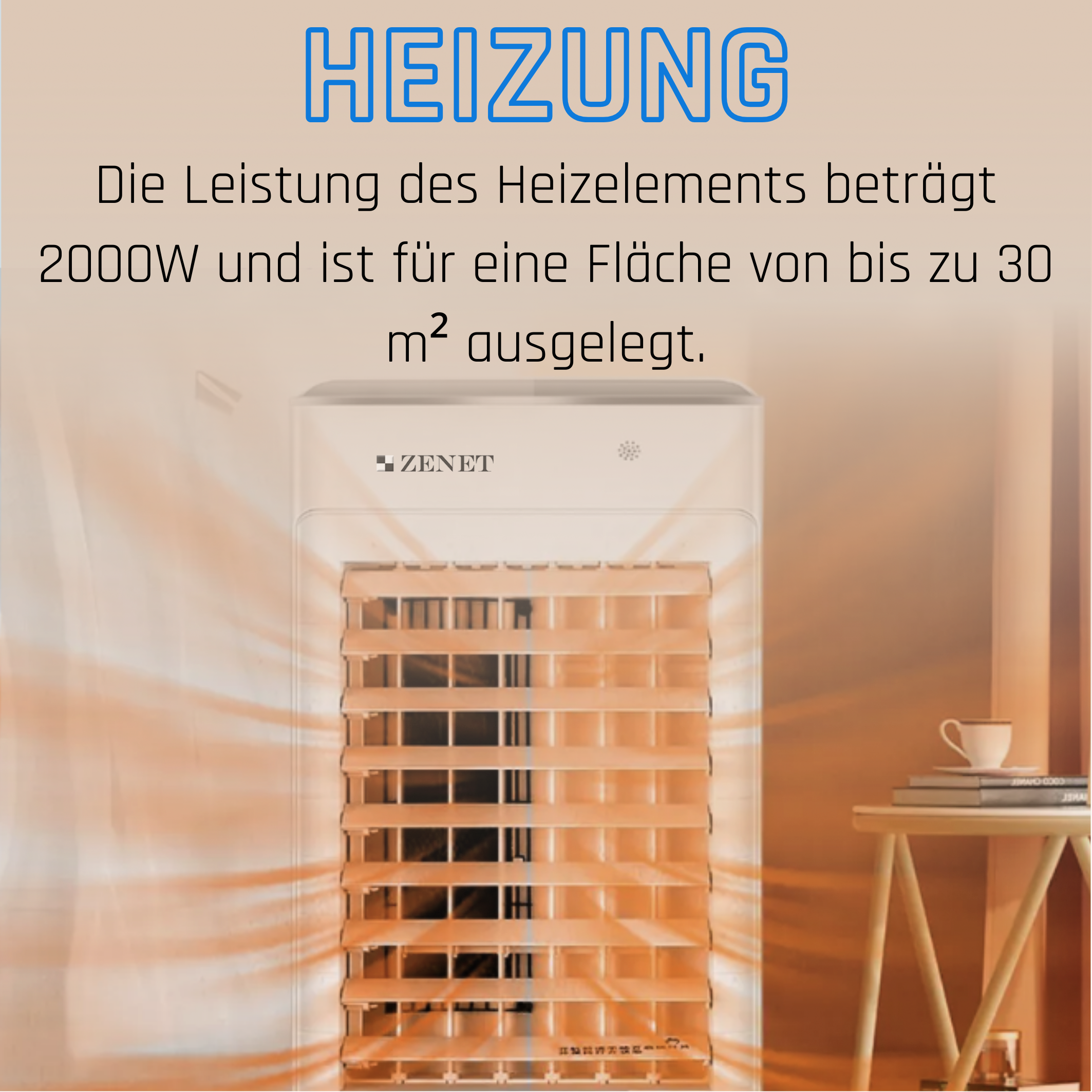 - Heizung: Die Leistung des Heizelements beträgt 2000 W und sorgt für Wärme in der kalten Jahreszeit.