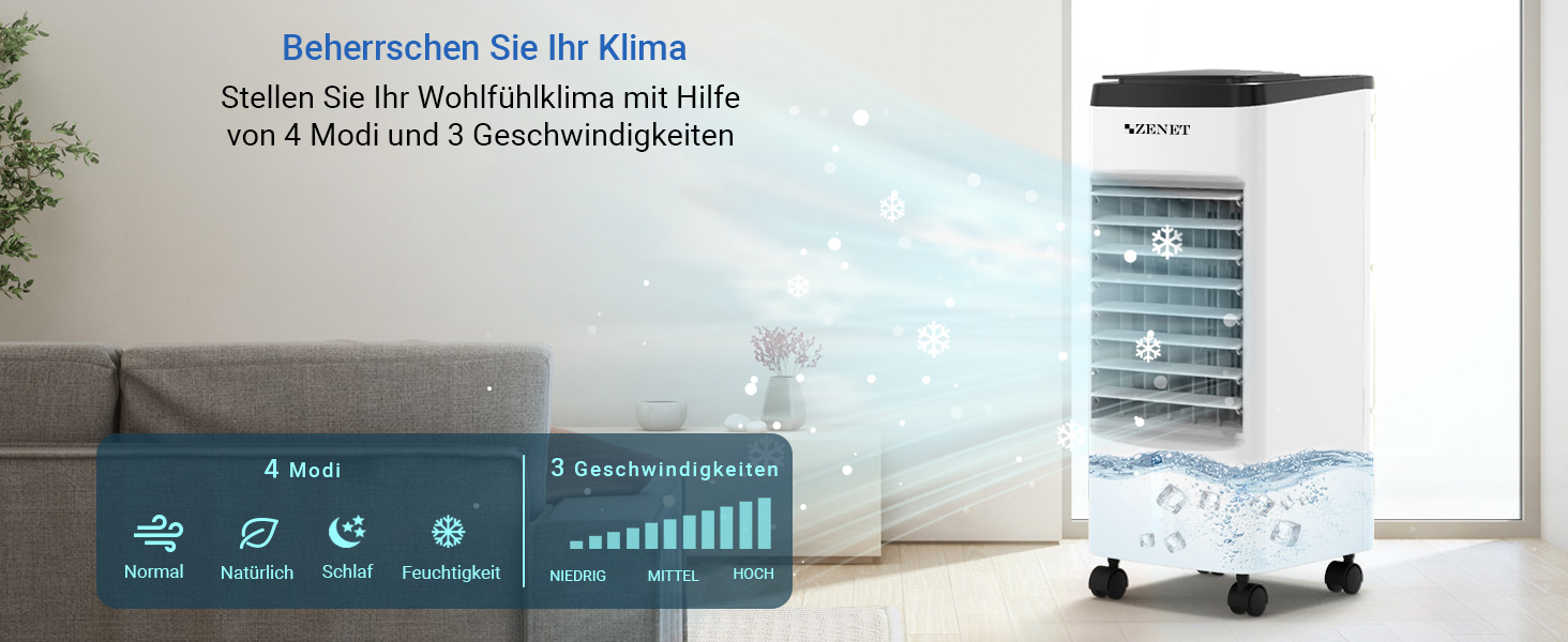 Erleben Sie die Vorteile des Zenet ZET-483, der die Funktionen eines Ventilators mit Wasserkühlung und eines mobile Klimagerätes in einem Gerät vereint. So können Sie in jeder Situation für optimale Luftqualität und Komfort sorgen, egal ob Sie sich entspannen oder arbeiten möchten. Lassen Sie sich von der Effizienz und Vielseitigkeit des Zenet ZET-483 überzeugen!
