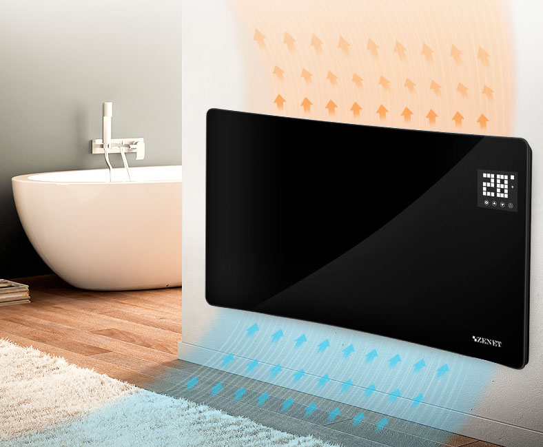 Zenet Zet-523 to nowoczesny energooszczędny grzejnik z eleganckim wykończeniem w postaci szklanych frontów, w kolorze czarnym. Sprawdzi się w każdym miejscu, nadając domowej aranżacji indywidualnego charakteru. Wąski i smukły panel sprawia, że urządzenie nie zajmuje dużo miejsca i można je umieścić w dużym salonie, jaki i niewielkim pomieszczeniu. Dwa rodzaje montażu: zawieszenie na ścianie lub postawienie na podłodze. W grzejniku zastosowano aluminiowy element grzejny w kształcie litery X. Jest to nowoczesne rozwiązanie pozwalające osiągnąć lepsze parametry grzejne niż typowe grzejniki z grzałką grzebieniową.