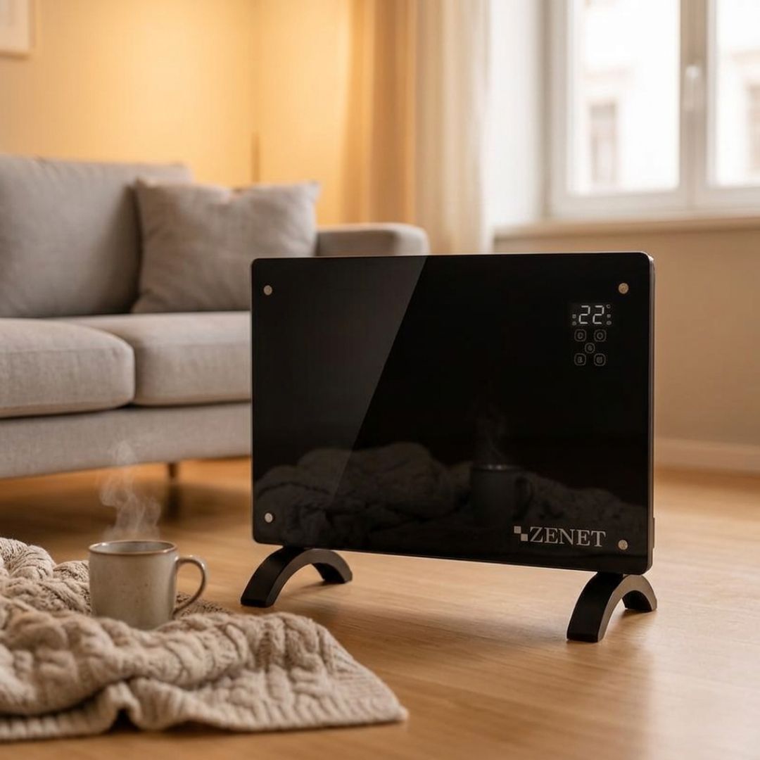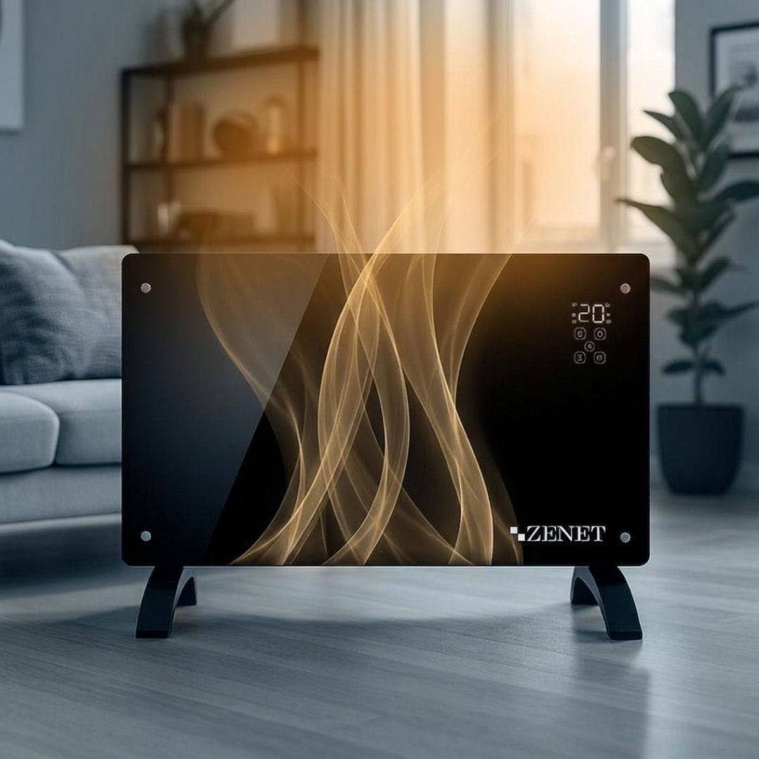 Zenet ZET-530 електрически стъклен конвектор 2000wZenet ZET-530 електрически стъклен конвектор е модерно, енергоспестяващо решение за отопление на вашия дом или офис. Този стенен или стоящ отоплителен уред не само ефективно затопля помещението, но и ..