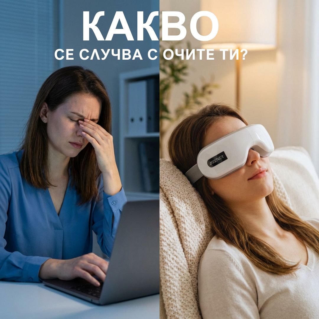 След 6–10 часа пред компютър очите не просто се изморяват. Те се пренапрягат. Появява се тежест, сухота, напрежение в челото. Масажорът комбинира въздушна компресия, топлина и вибрация, за да намали това напрежение.