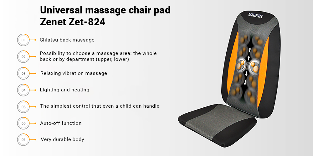 This model has a frame high back, which allows you to use the massager pad on any sofa, chair with a low back, car seat or armchair. We recommend buying a massager Zenet ZET-824 universal and enjoy a wellness massage.