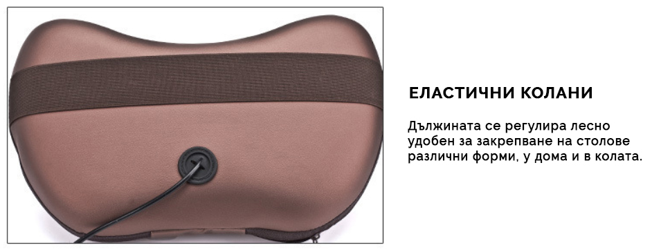 Еластични велкро ленти служат за по-голям комфорт и стабилност при закрепването на шиацу възглавницата към стола.