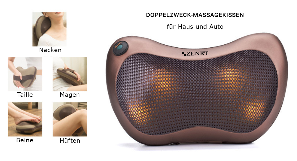Rollenmassagekissen Zenet Zet-727 entspannt schnell und effektiv die Muskeln, lindert Krämpfe im Nacken, in den Schultern und im Rücken.