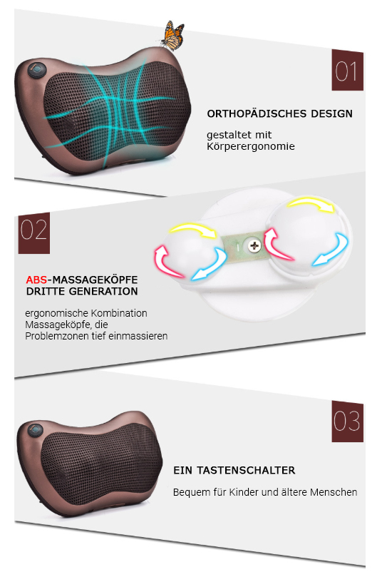 Heizfunktion: Für eine effektivere Massage, angenehme Empfindungen und Anregung des Kreislaufs.