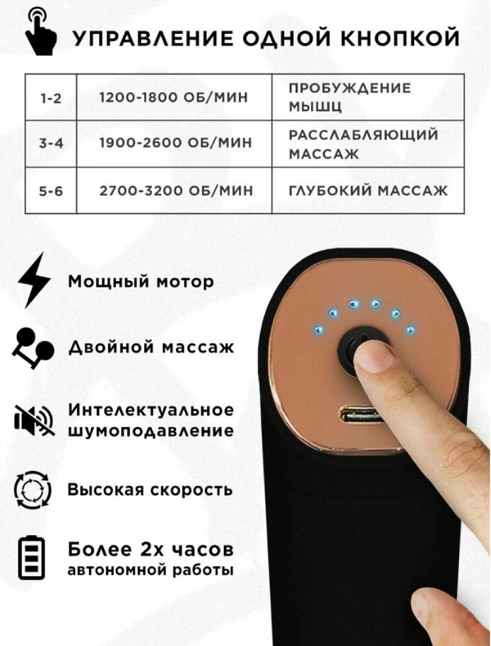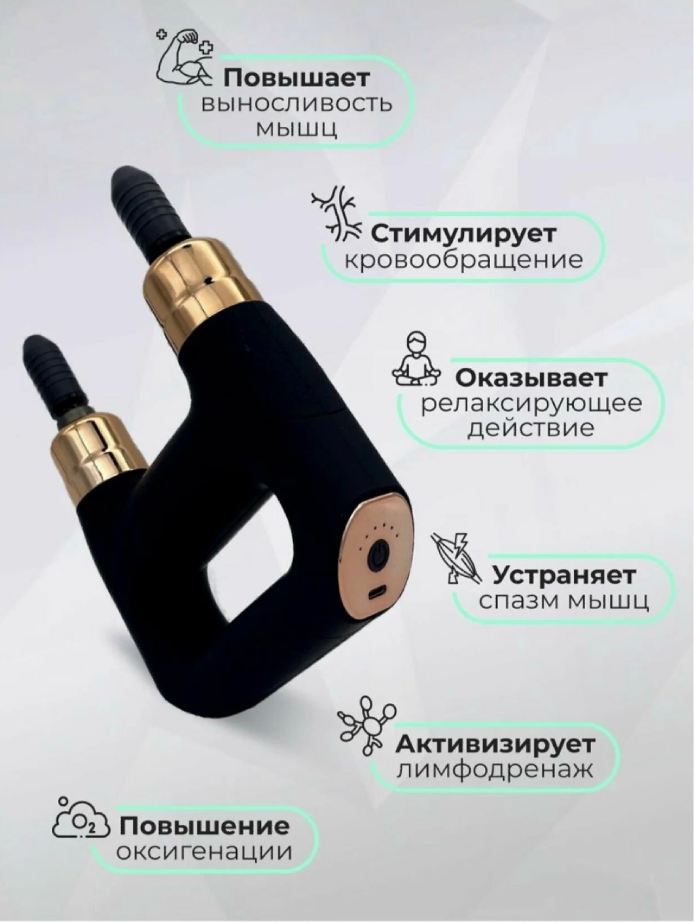 Оформить заказВиброударный массажер с USB-зарядкой и двумя массажными головками.