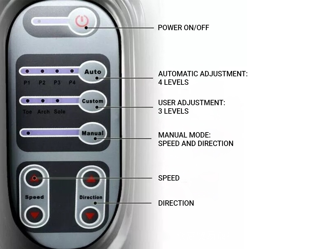 provides high-quality study of zones, elimination of puffiness and fatigue. The massage technique resembles the technique of a professional massage therapist, the rollers work on the acupuncture points of the foot. Massage improves blood circulation, thereby eliminating muscle tension.