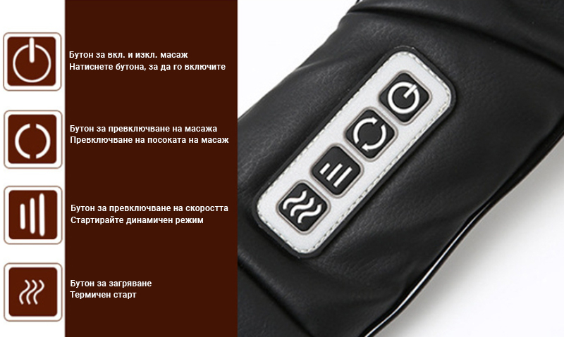 ✔ масажиращата яка може да се използва за масаж на кръста, на коремните мускули;