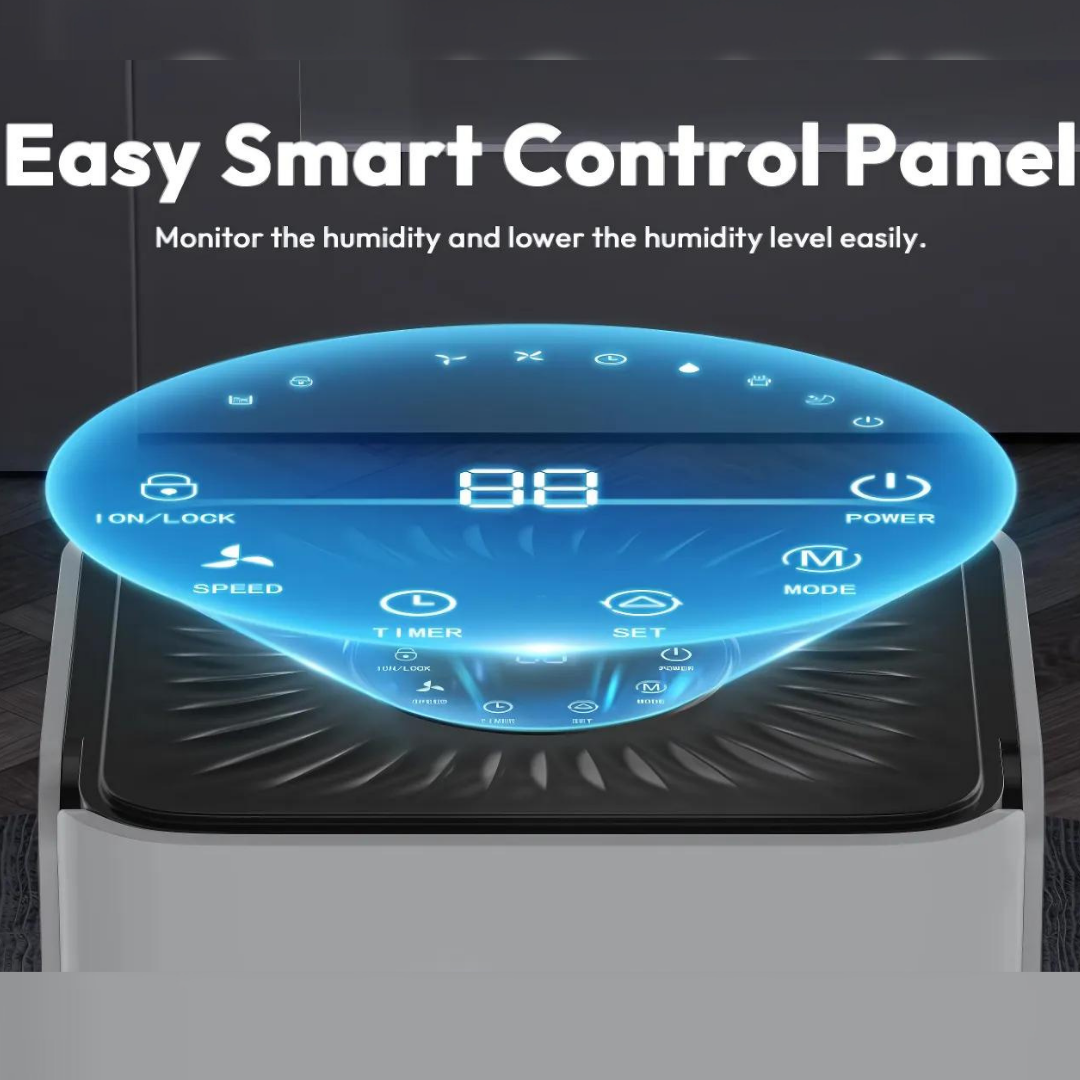 Łatwy w obsłudze panel kontrolny pozwala na dostosowanie trybu pracy i poziomu osuszania do Twoich potrzeb. Dzięki trzem prędkościom pracy oraz trybowi nocnemu, osuszacz ten idealnie nadaje się do każdego pomieszczenia, takiego jak sypialnie, salony czy biura. Dodatkowo posiada automatyczne wyłączanie oraz wskaźnik wymiany filtra, co zapewnia wygodę użytkowania i bezpieczeństwo.