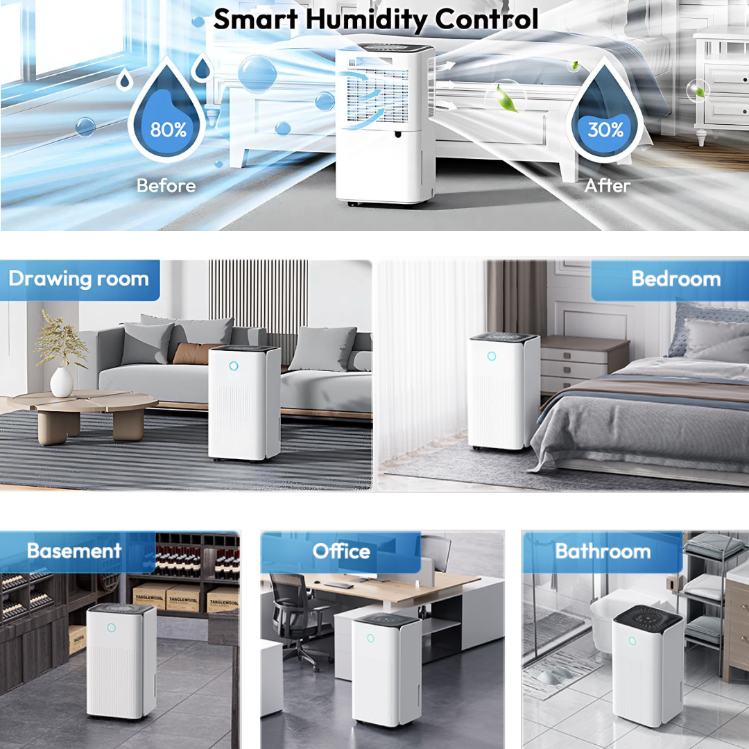 Acest Dezumidificator de aer dispune de un panou de control intuitiv, care permite ajustarea ușoară a modului de funcționare dorit. Cu trei viteze ale ventilatorului și un mod de noapte silențios, dispozitivul este ideal pentru orice încăpere, inclusiv dormitoare, livinguri și birouri.