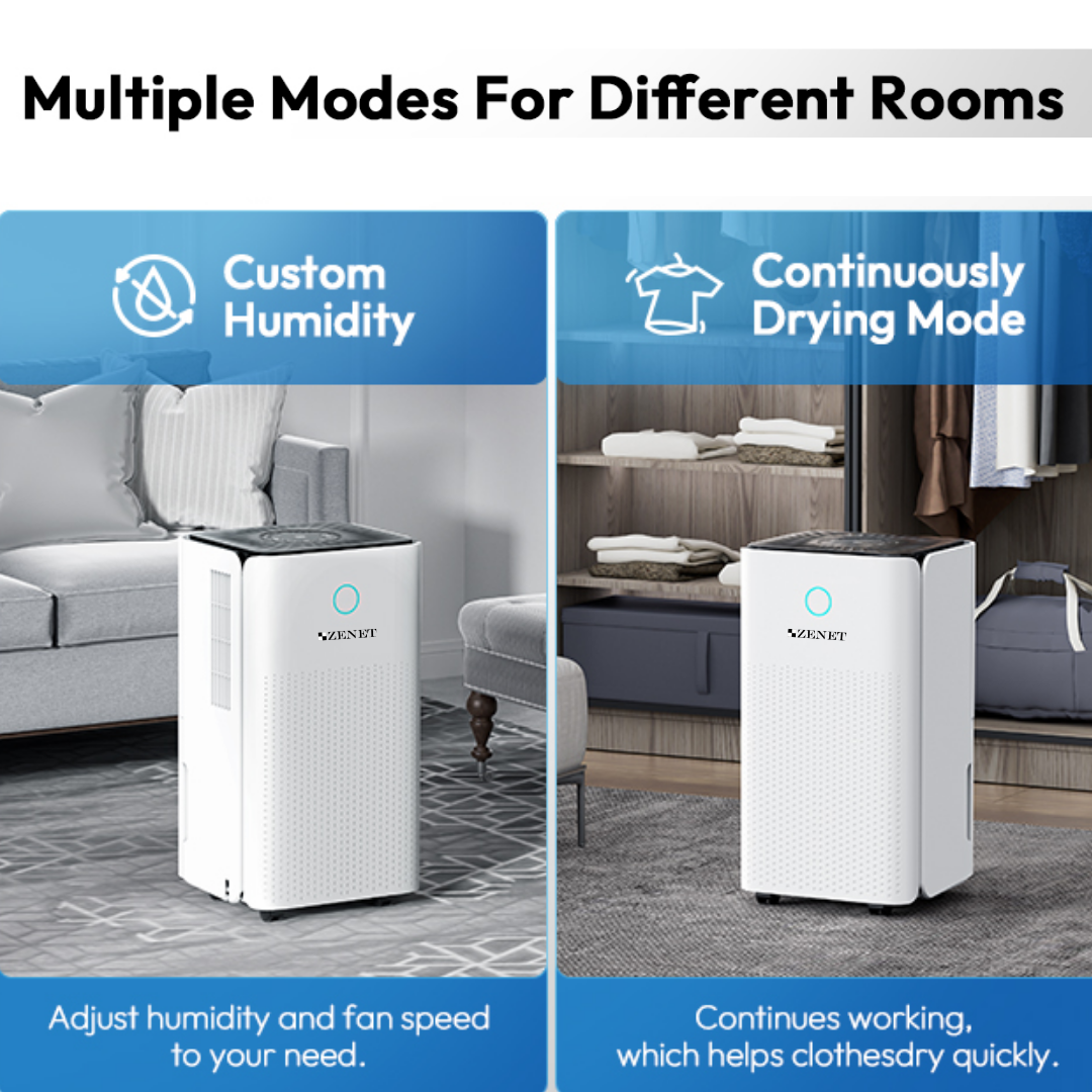 Dezumidificatorul Zenet ZET-203 este o soluție eficientă pentru încăperi de până la 40 mp. Proiectat pentru utilizare acasă și la birou.