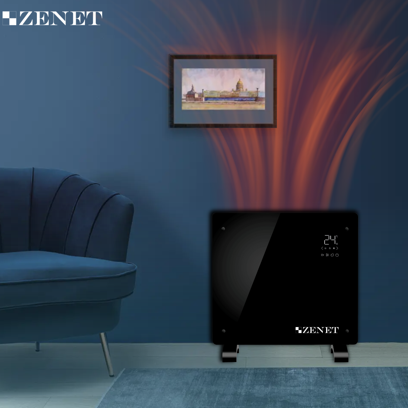 Zenet ZET-523 можно установить на стену или использовать как напольный обогреватель благодаря удобным ножкам. В комплект входит пульт дистанционного управления, что делает использование прибора максимально комфортным – вы сможете управлять температурой и настраивать таймер с любого уголка комнаты.